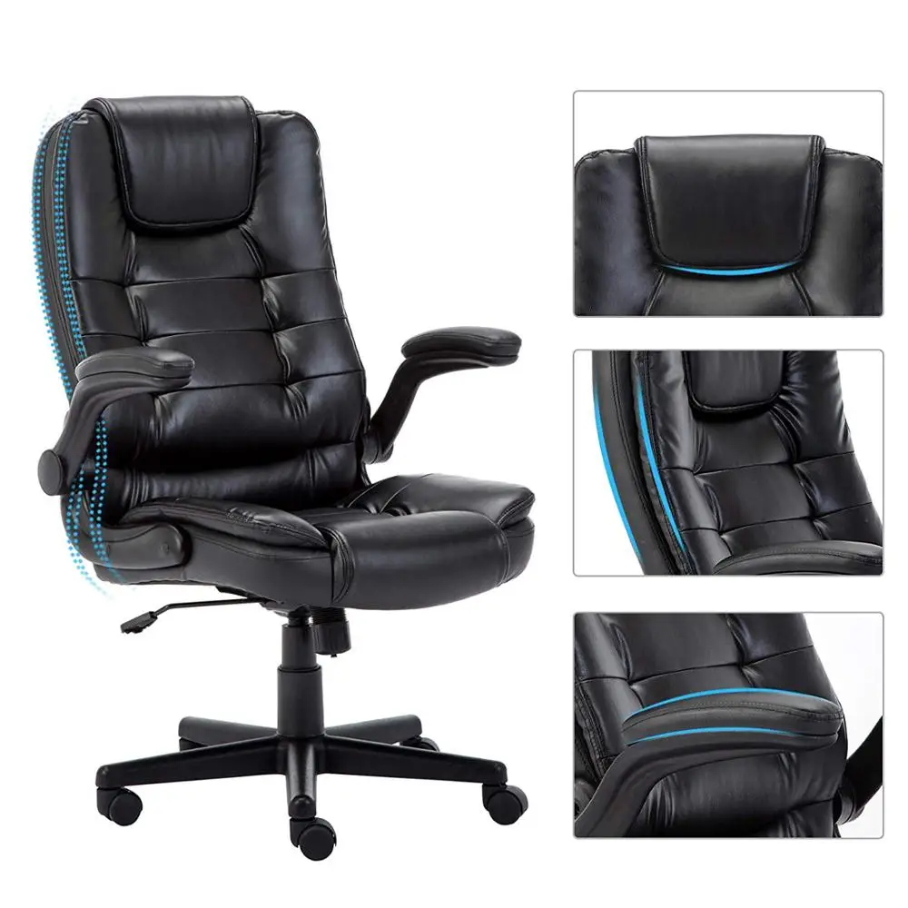 | Leather Office Executive Compute Chair with Foldable Arms, Ergonomic Swivel Computer Desk Chair |